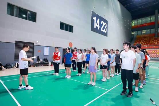 活动以羽毛球比赛拉开序幕。三个年级与教职工共同组成三支队伍,分别为“2022级+教职工联队”、“2023级代表队”和“2024级代表队”。比赛前,统计与数据科学系教学副系主任、系党总支部书记蒋学军副教授作动员发言,指出羽毛球运动有助于锻炼体魄、培养意志,本次活动是一次良好的团队协作能力的教育实践。