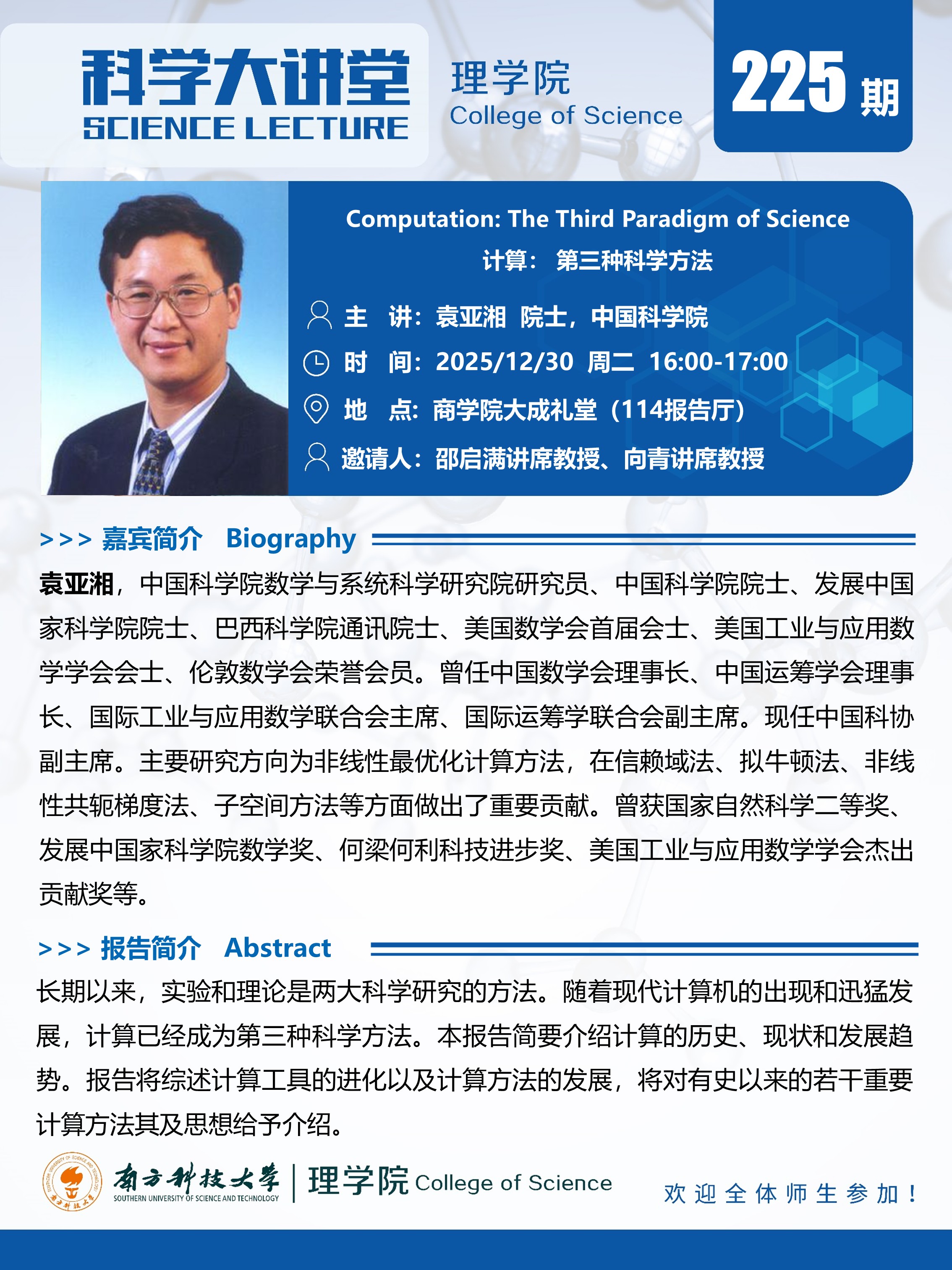 演讲者:袁亚湘院士,中国科学院