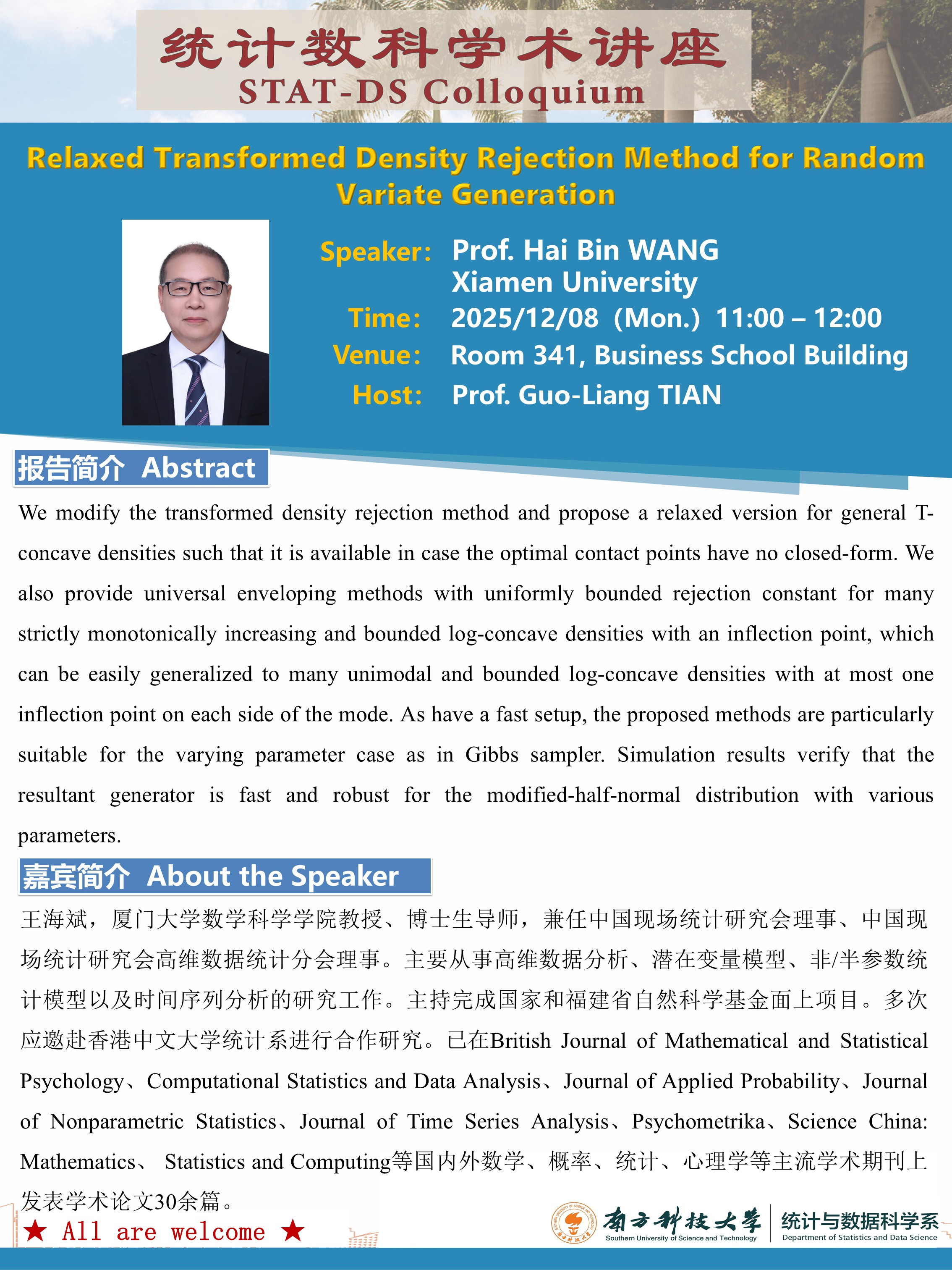 演讲者:Prof. Hai Bin WANG, Xiamen University