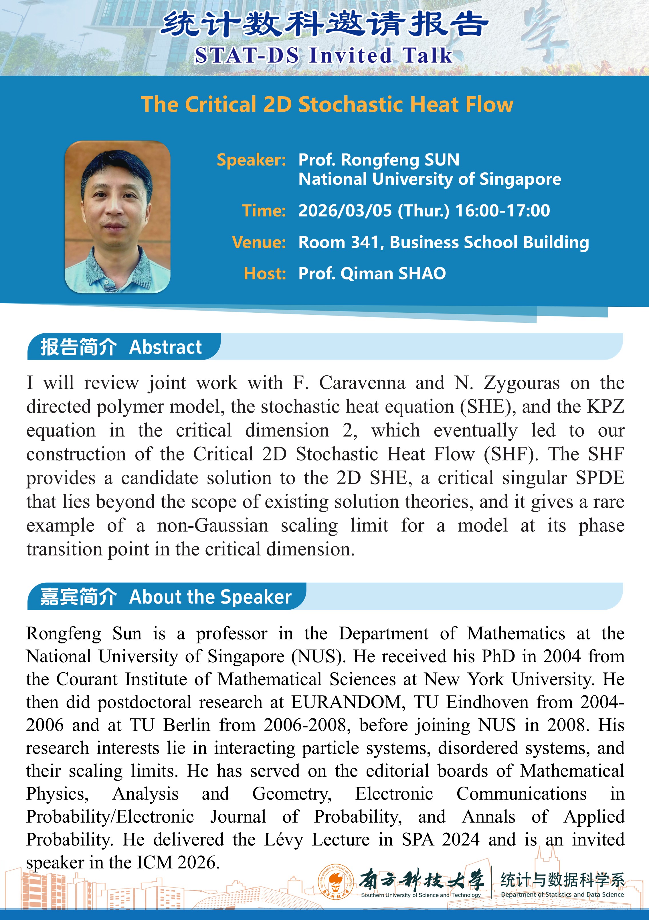 Speaker:Prof. Rongfeng SUN, National University of Singapore
