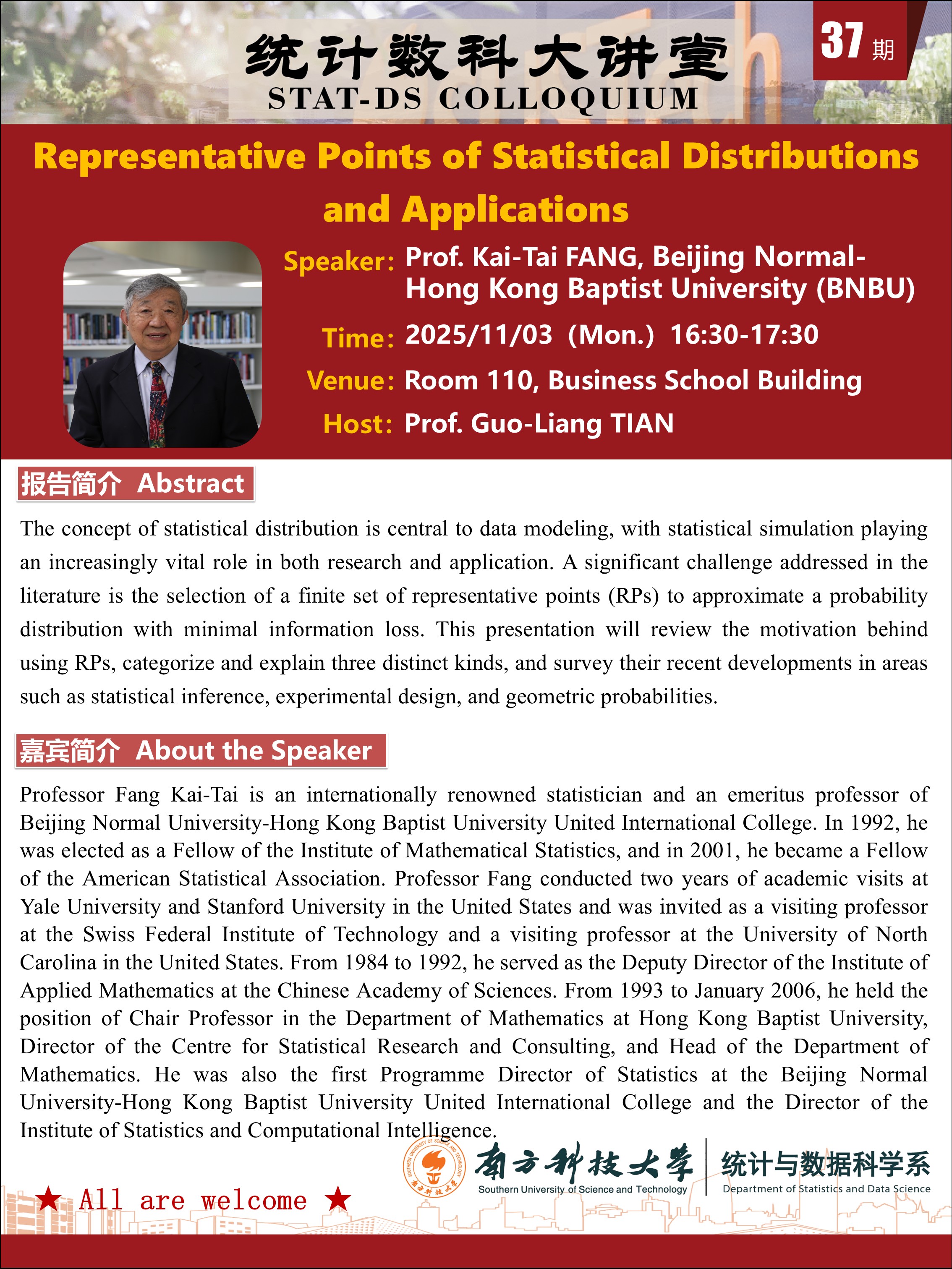 演讲者:Prof. Kai-Tai FANG, Beijing Normal- Hong Kong Baptist University (BNBU)