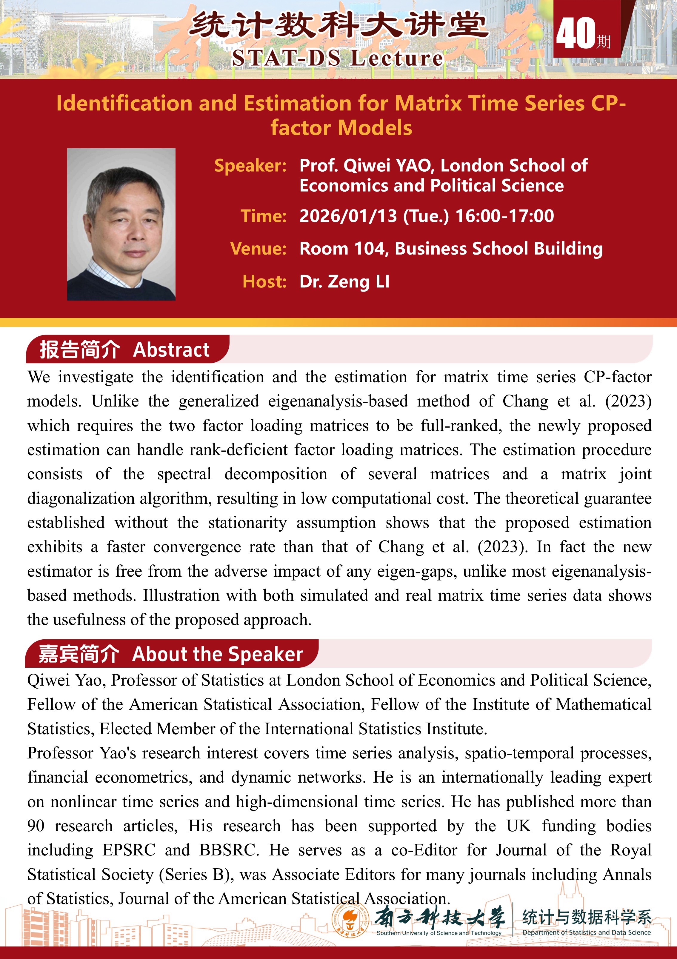 演讲者:Prof. Qiwei YAO, London School of Economics and Political Science